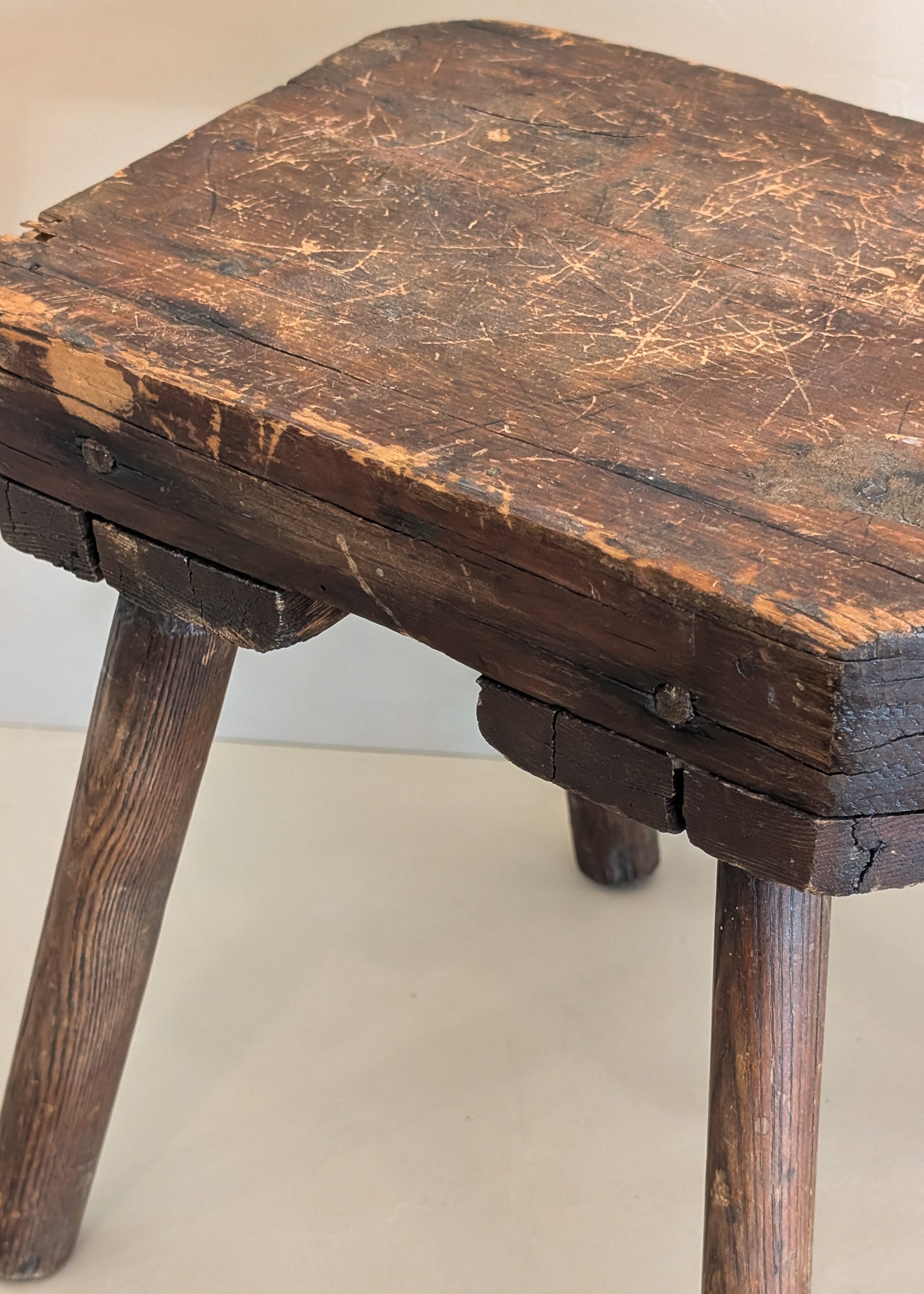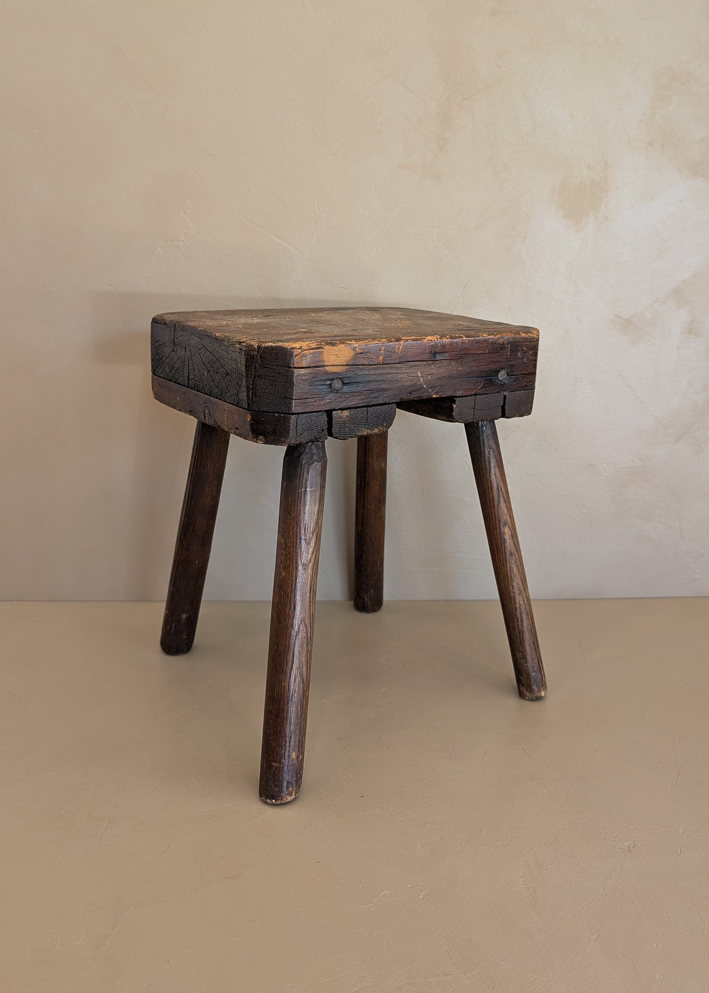 Antique Primitive Handmade Dark Wooden Stool