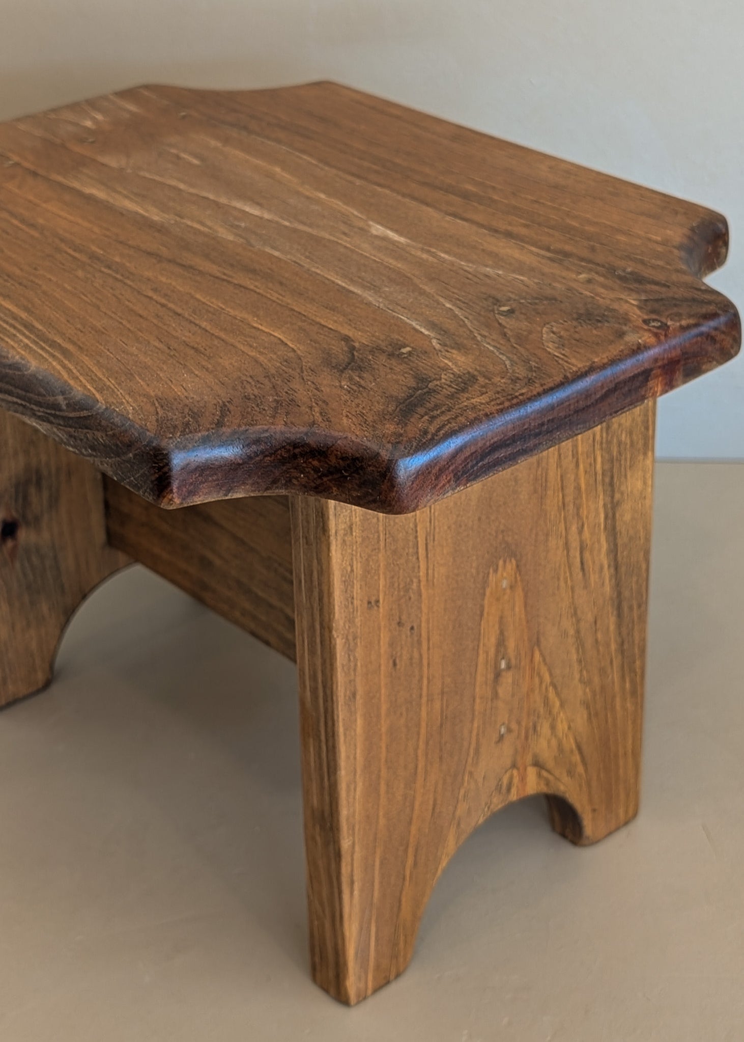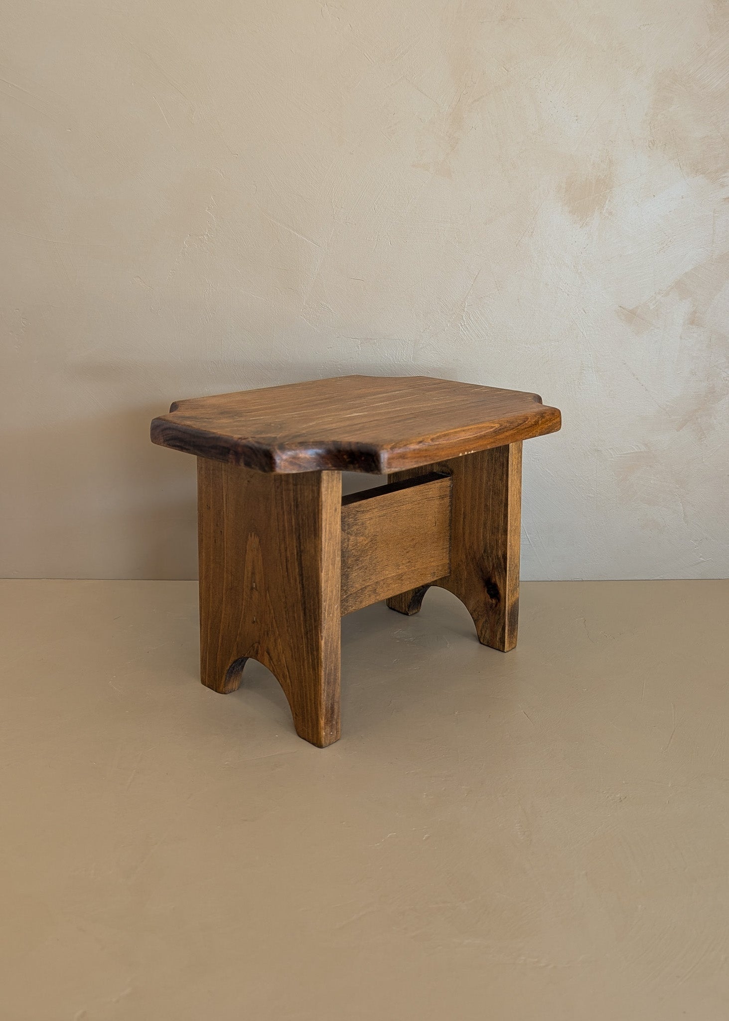 Petite Vintage Handmade Wooden Stool with Scalloped Top