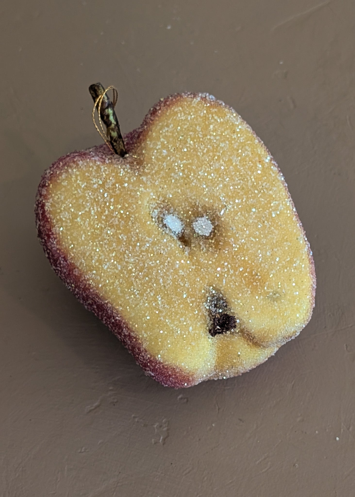 Vintage Glitter Sugared Cut Halved Red Apple Christmas Holiday Ornament