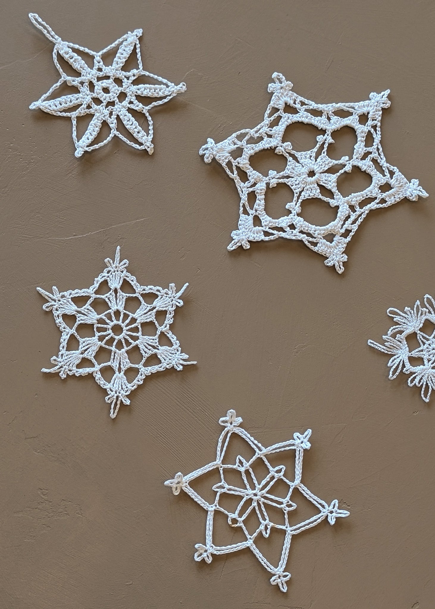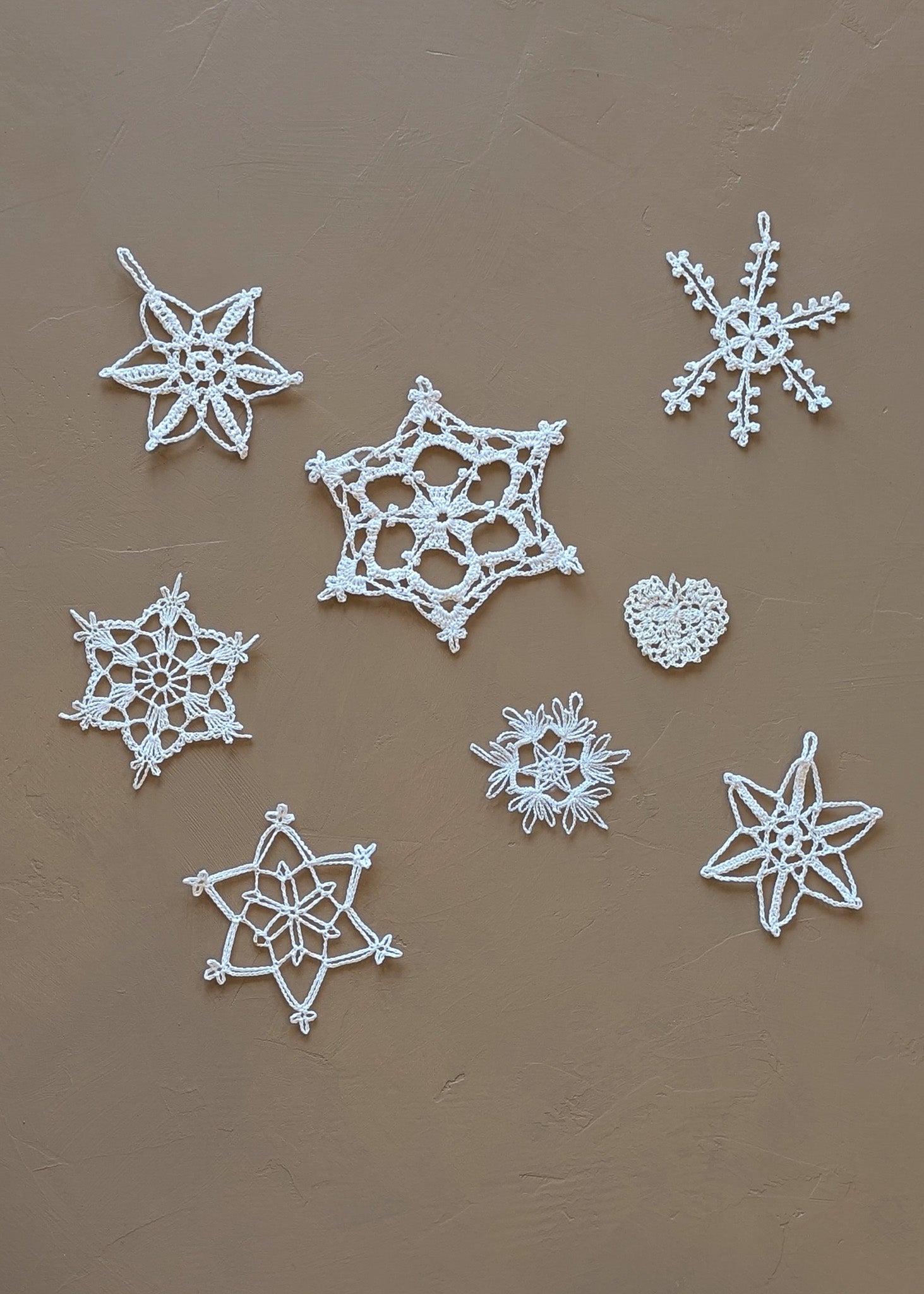 Set of 8 Vintage Crocheted Snowflake Christmas Holiday Ornaments