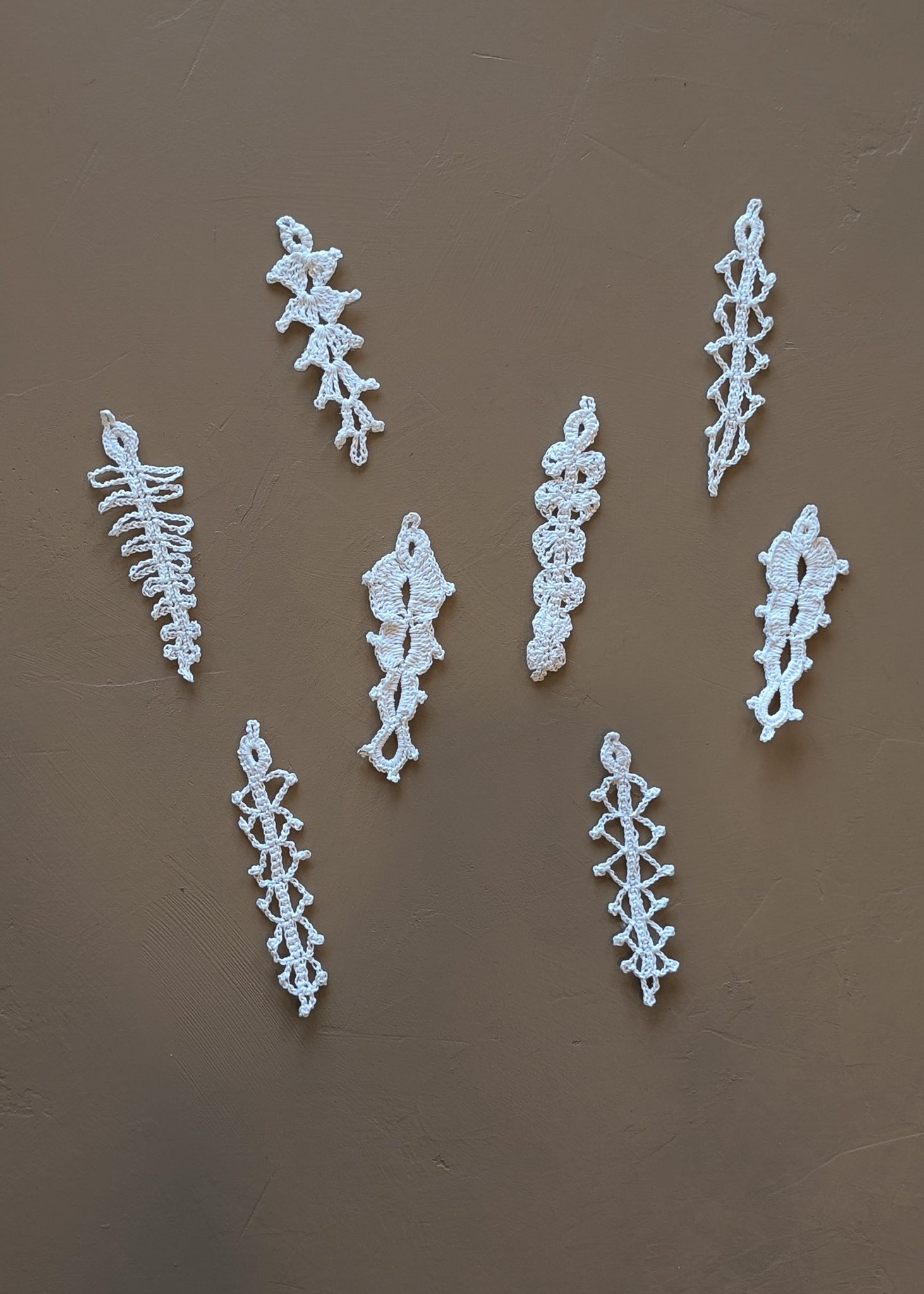 Set of 8 Vintage Crocheted White Icicle Christmas Holiday Ornaments