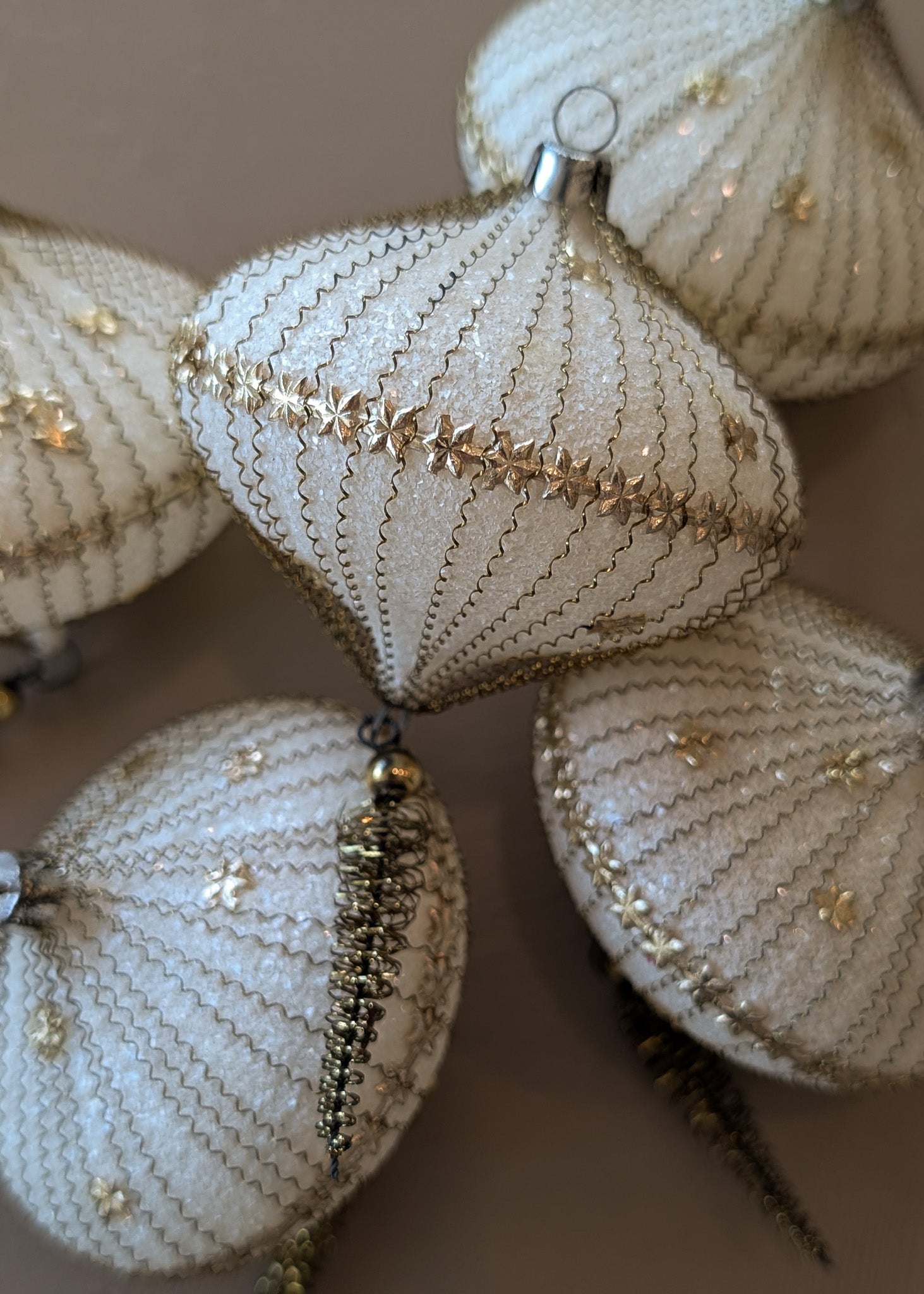 Set of 7 Vintage Cream Glass Christmas Ornaments