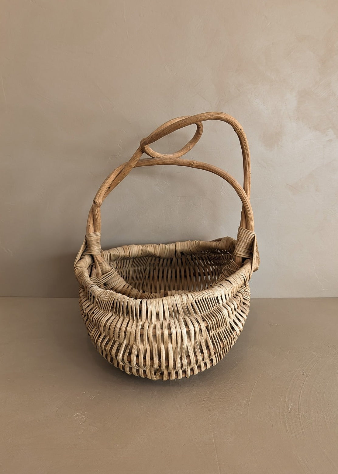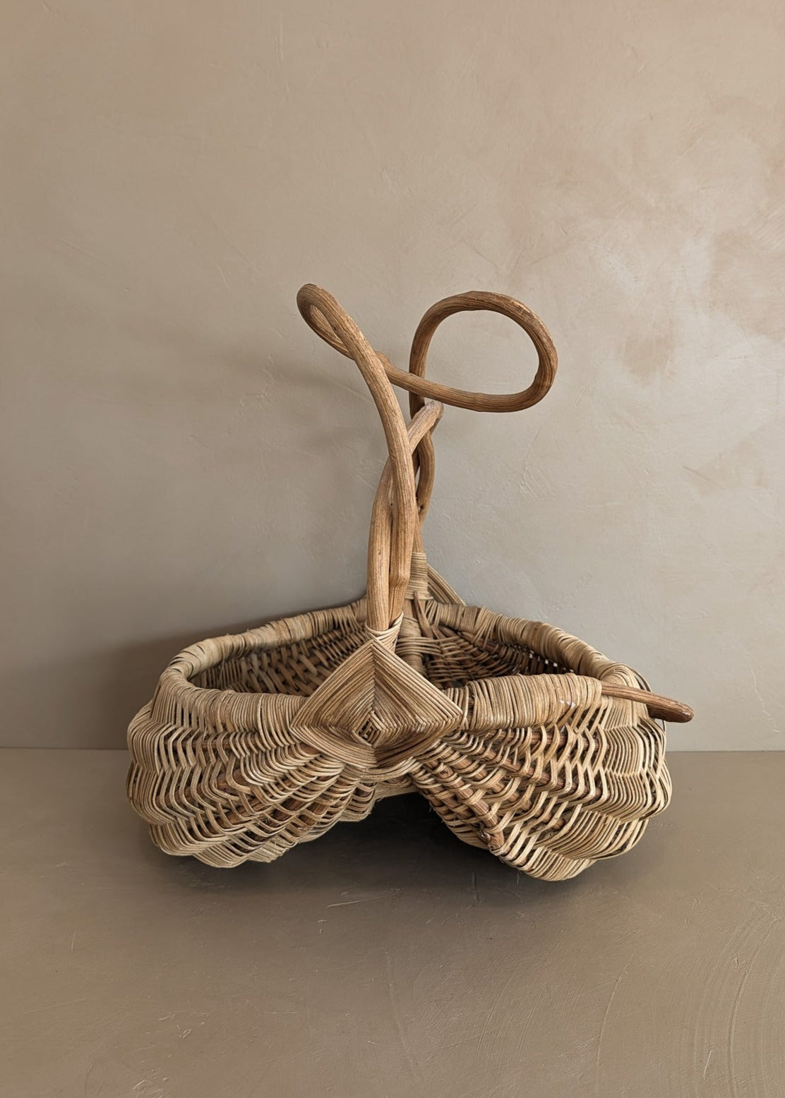 Unique Vintage Twisted Willow Handle Woven Basket
