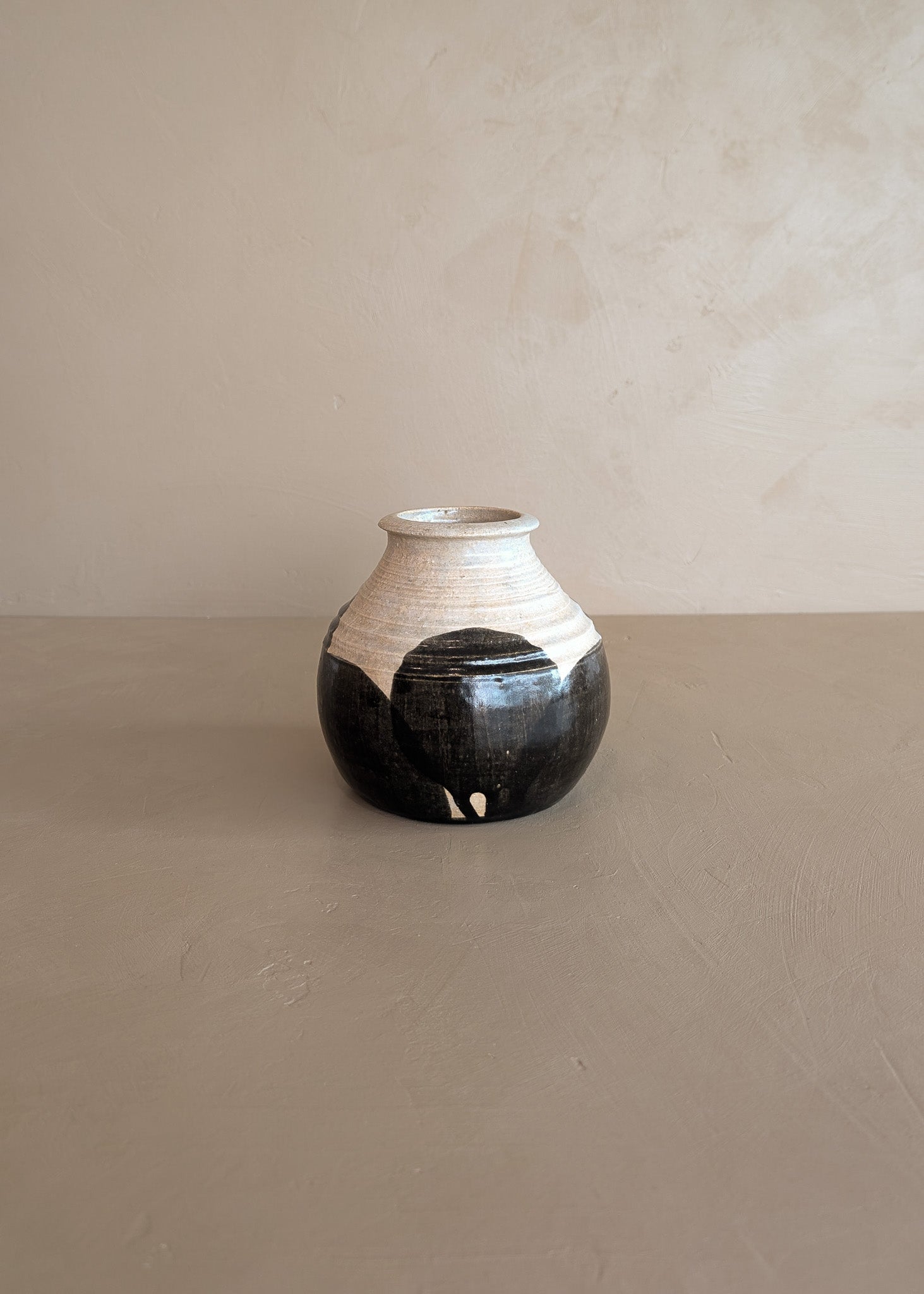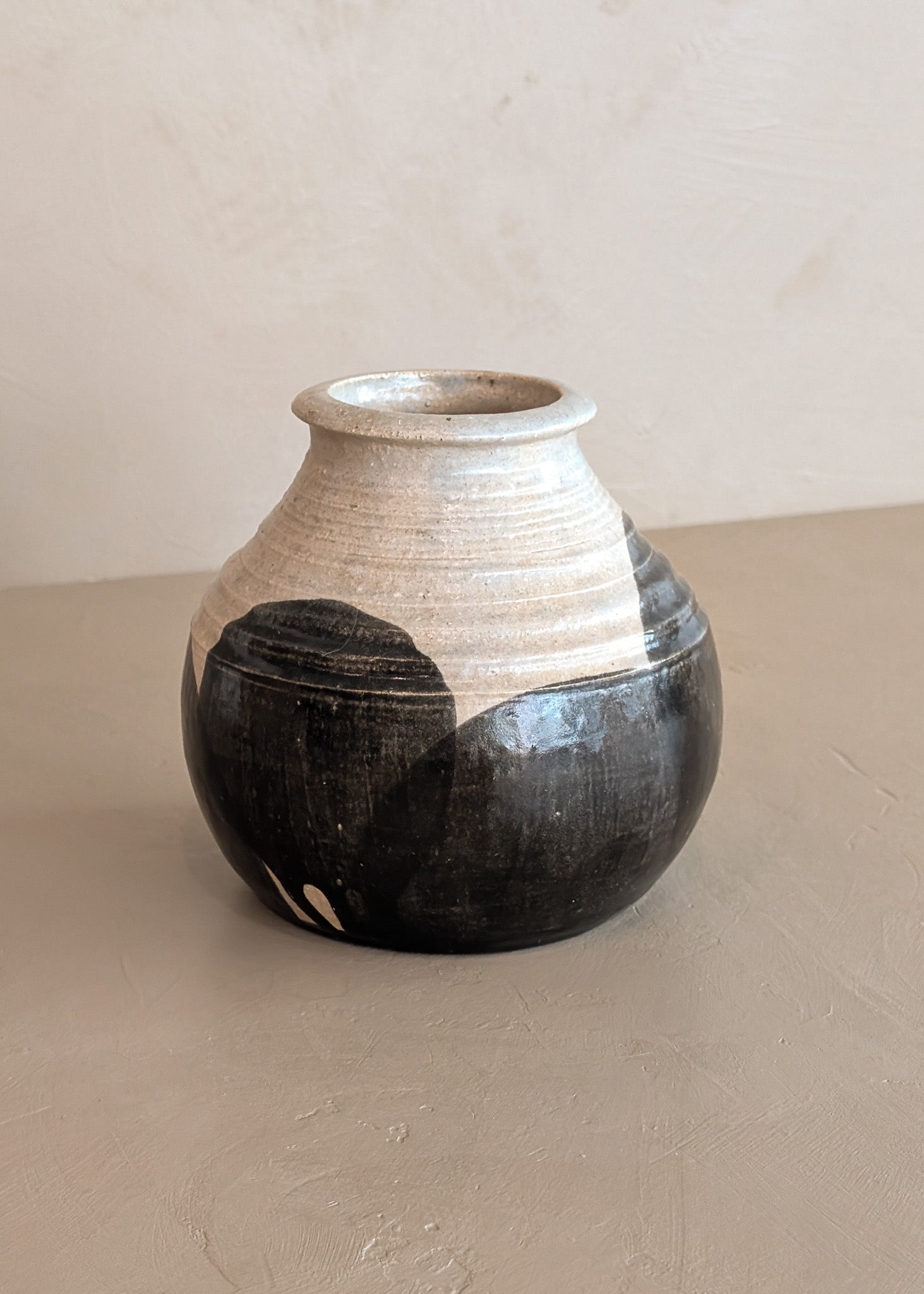 Beige Studio Pottery Vase with Black Geometric Circles