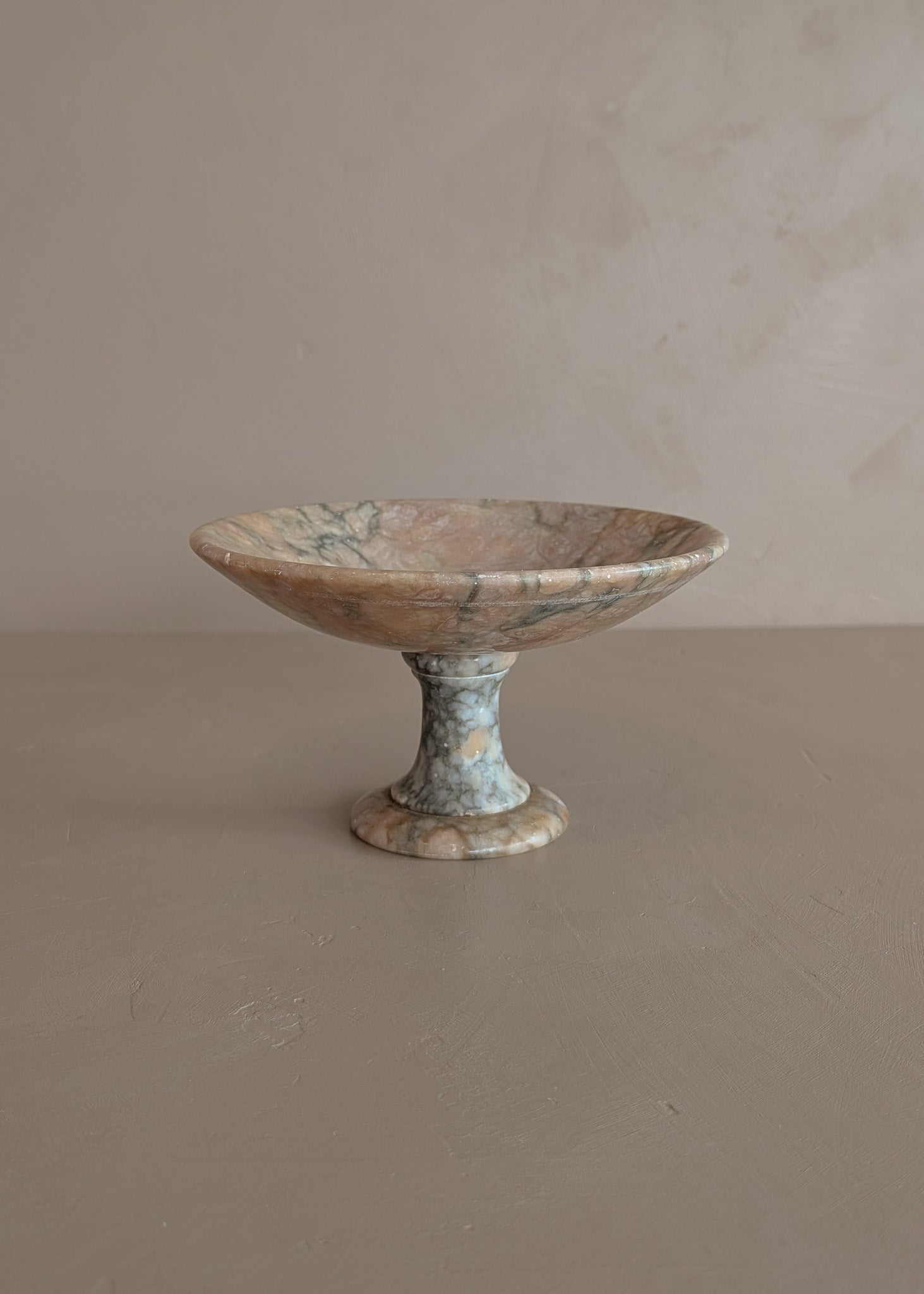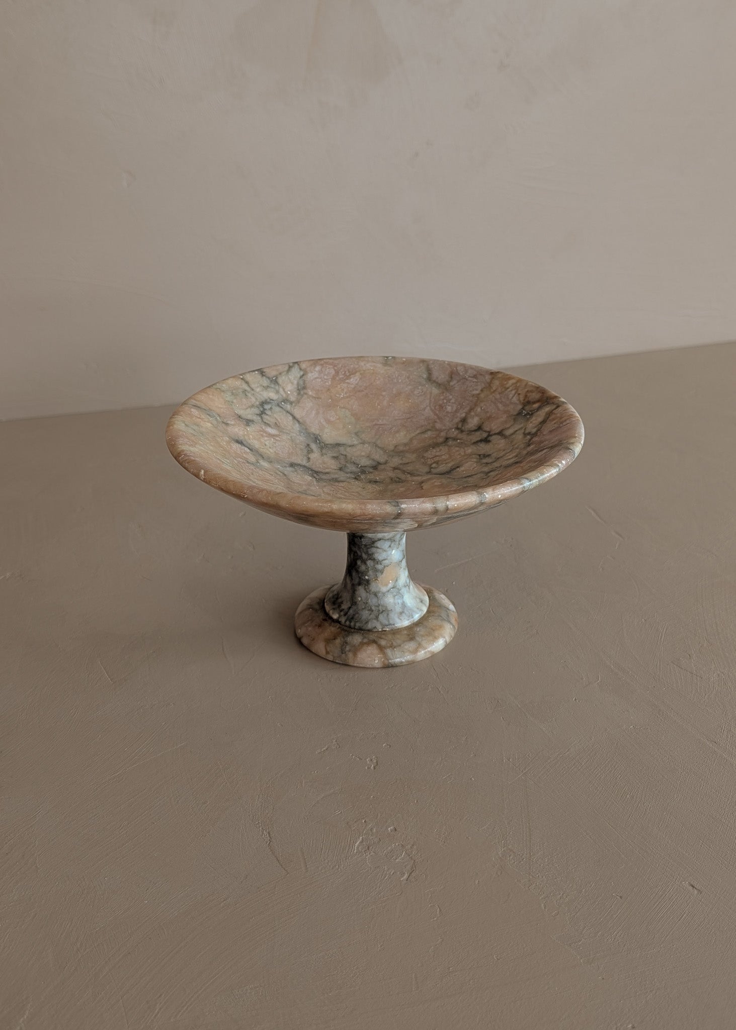 Petite Vintage Italian Alabaster Compote Pedestal Dish with Unique Coloring of Peach, Light Yellow and Green