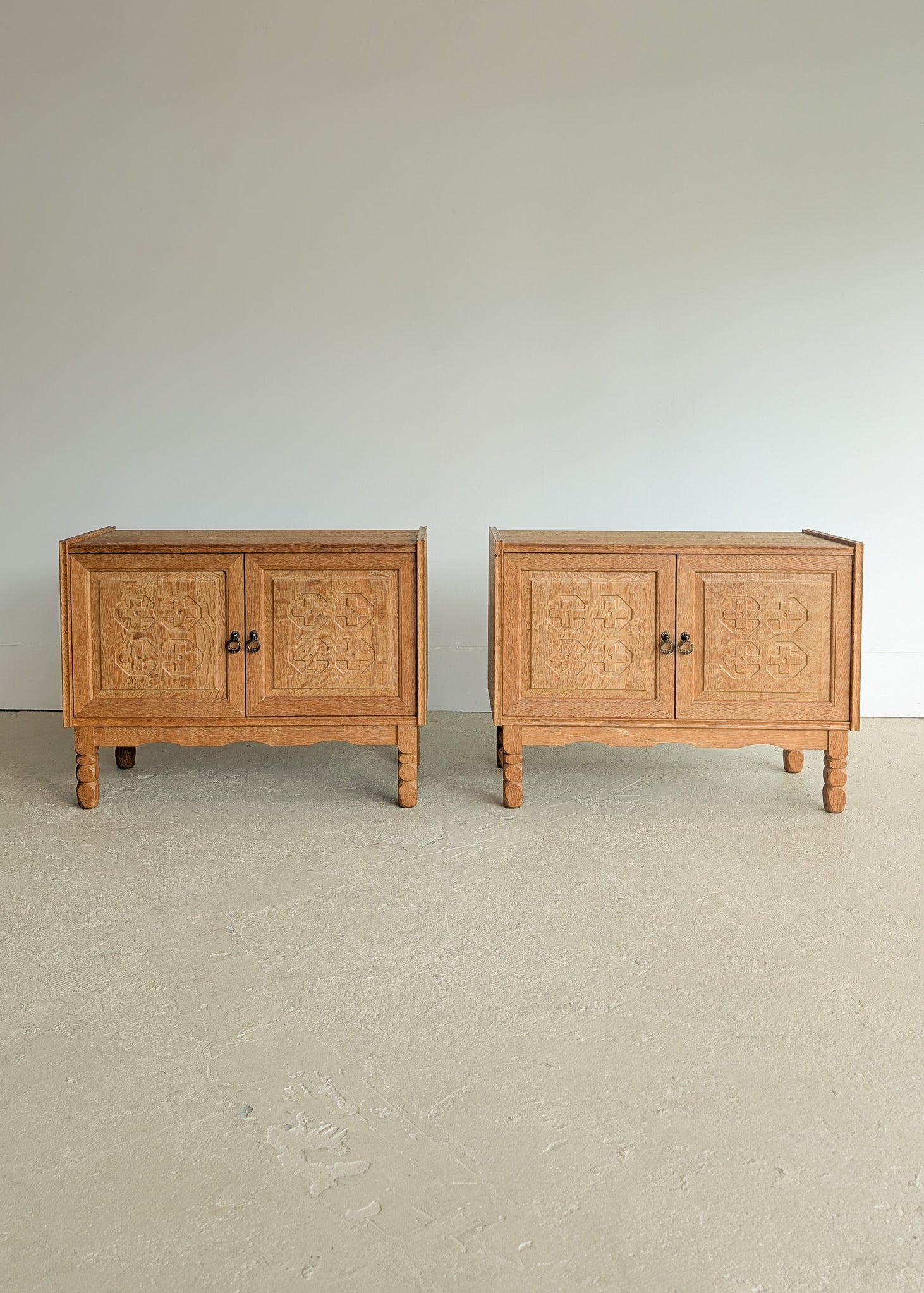 Pair of Vintage Danish Henning Kjærnulf-Attributed Quartersawn White Oak Cabinets with Adjustable Shelves