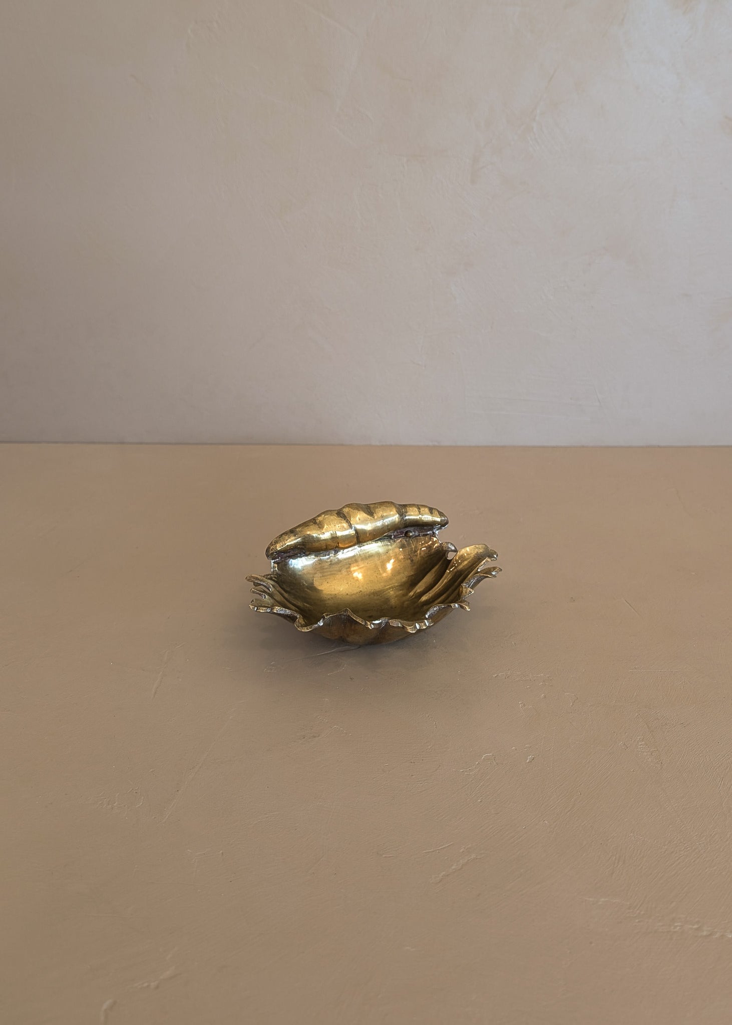 Large Vintage Brass Catchall Dish with Thick Braided Edge Detailing