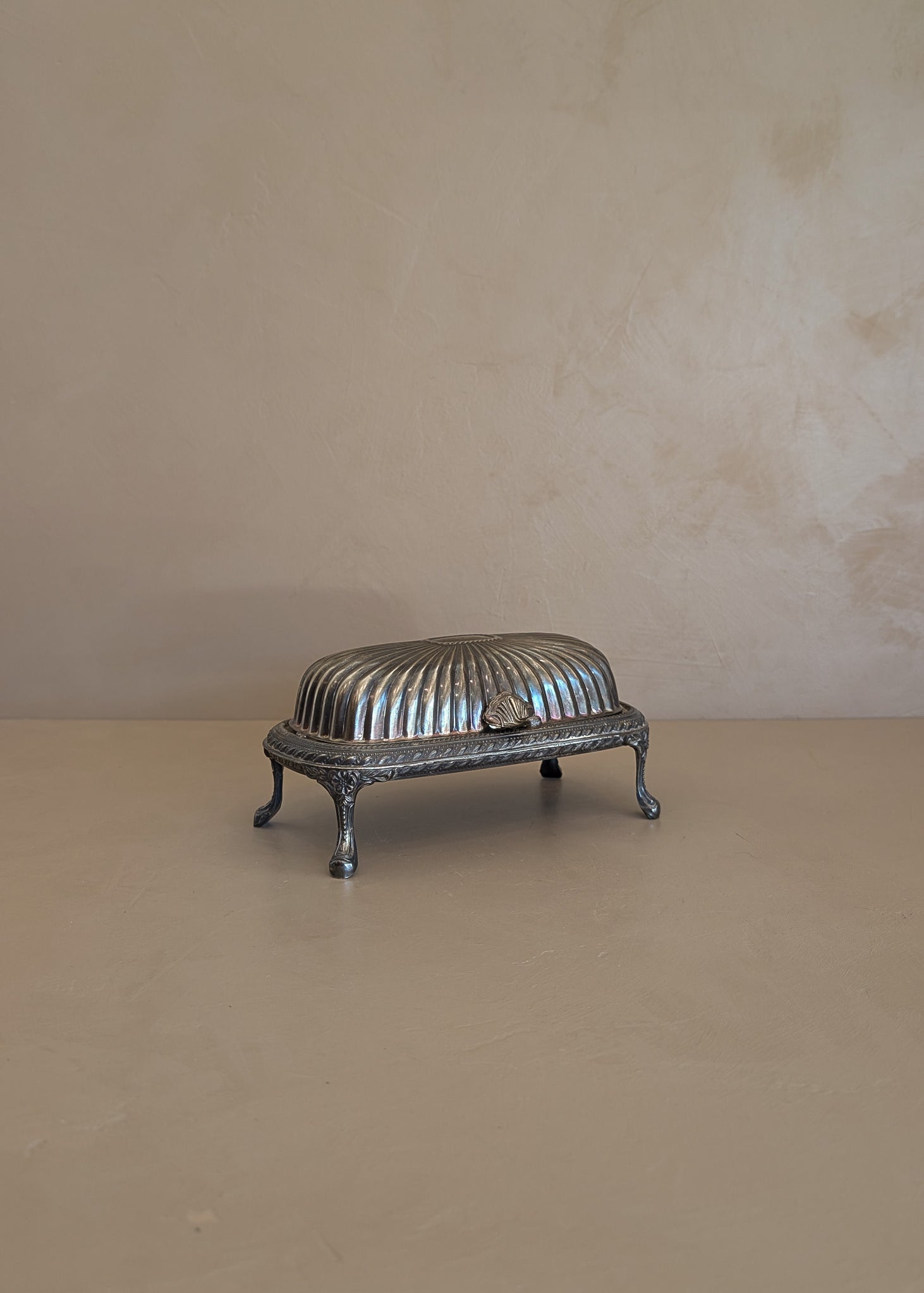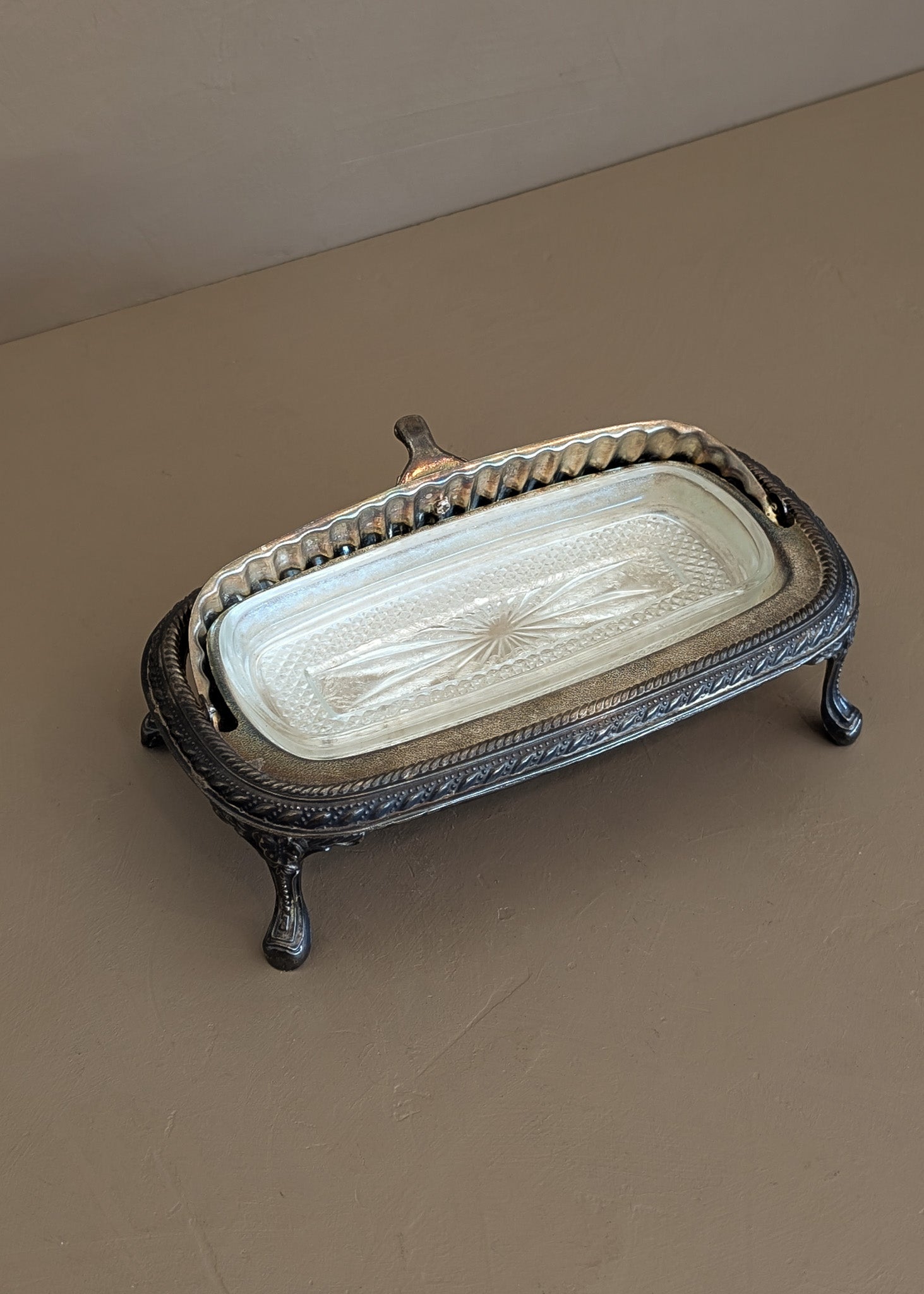 Vintage Silver-Plated Footed Dome Roll Top Butter Dish with Glass Insert