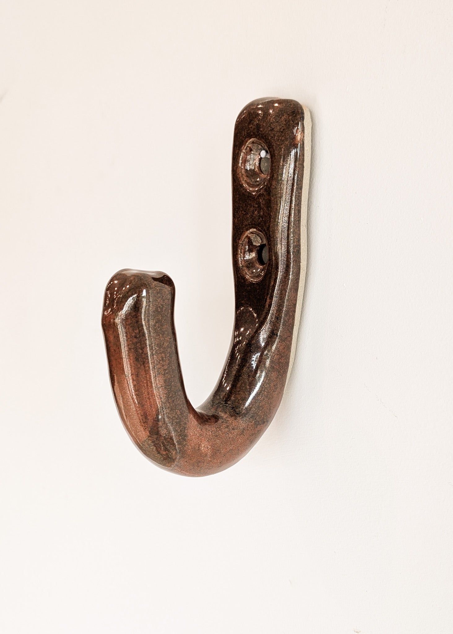 Dark Neutral Glazed Chunky Handmade Studio Pottery Ceramic Wall Hook