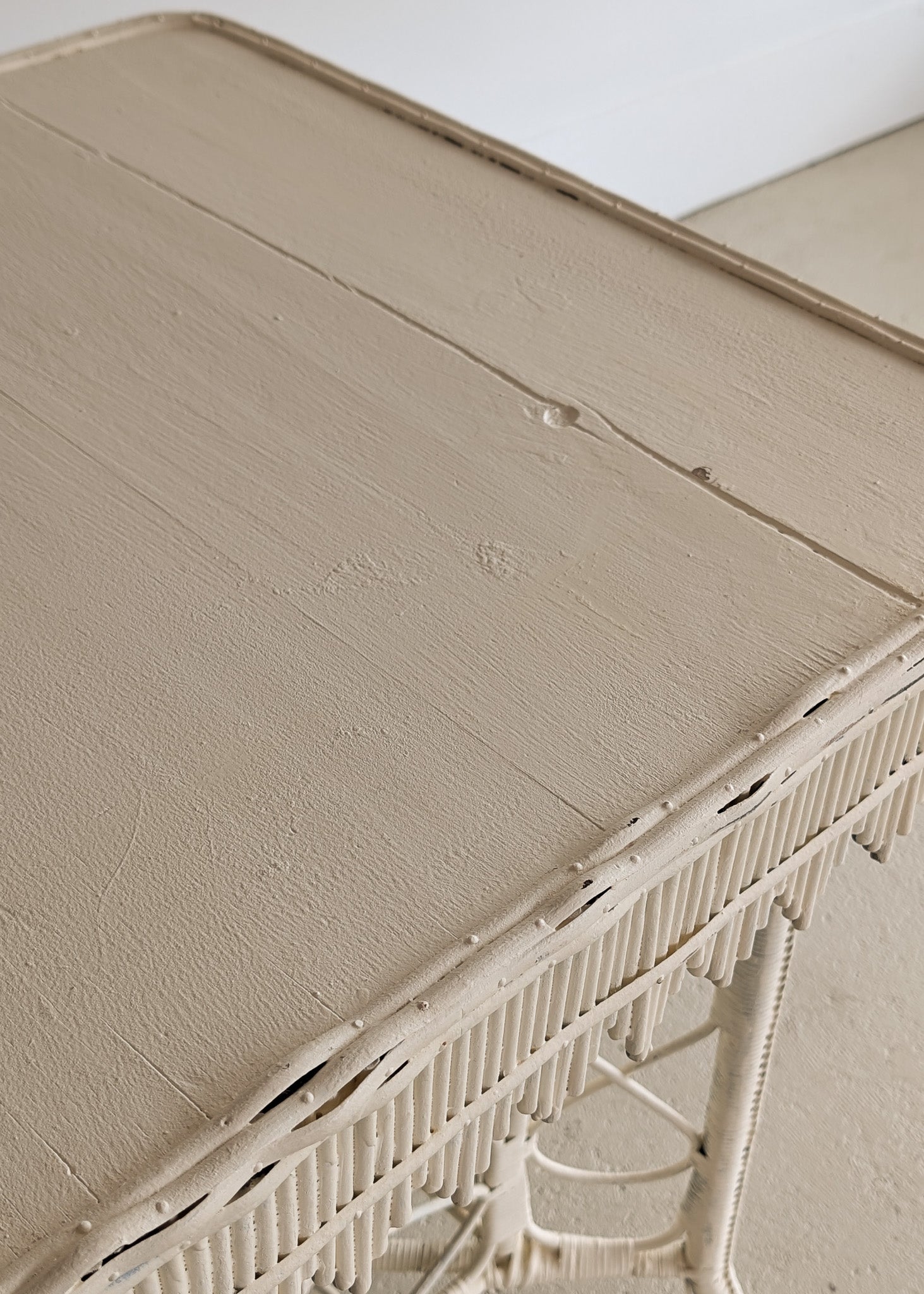 Antique Late 1800s Victorian Wakefield Rattan Company White Painted Rattan and Wicker Side or Breakfast Table
