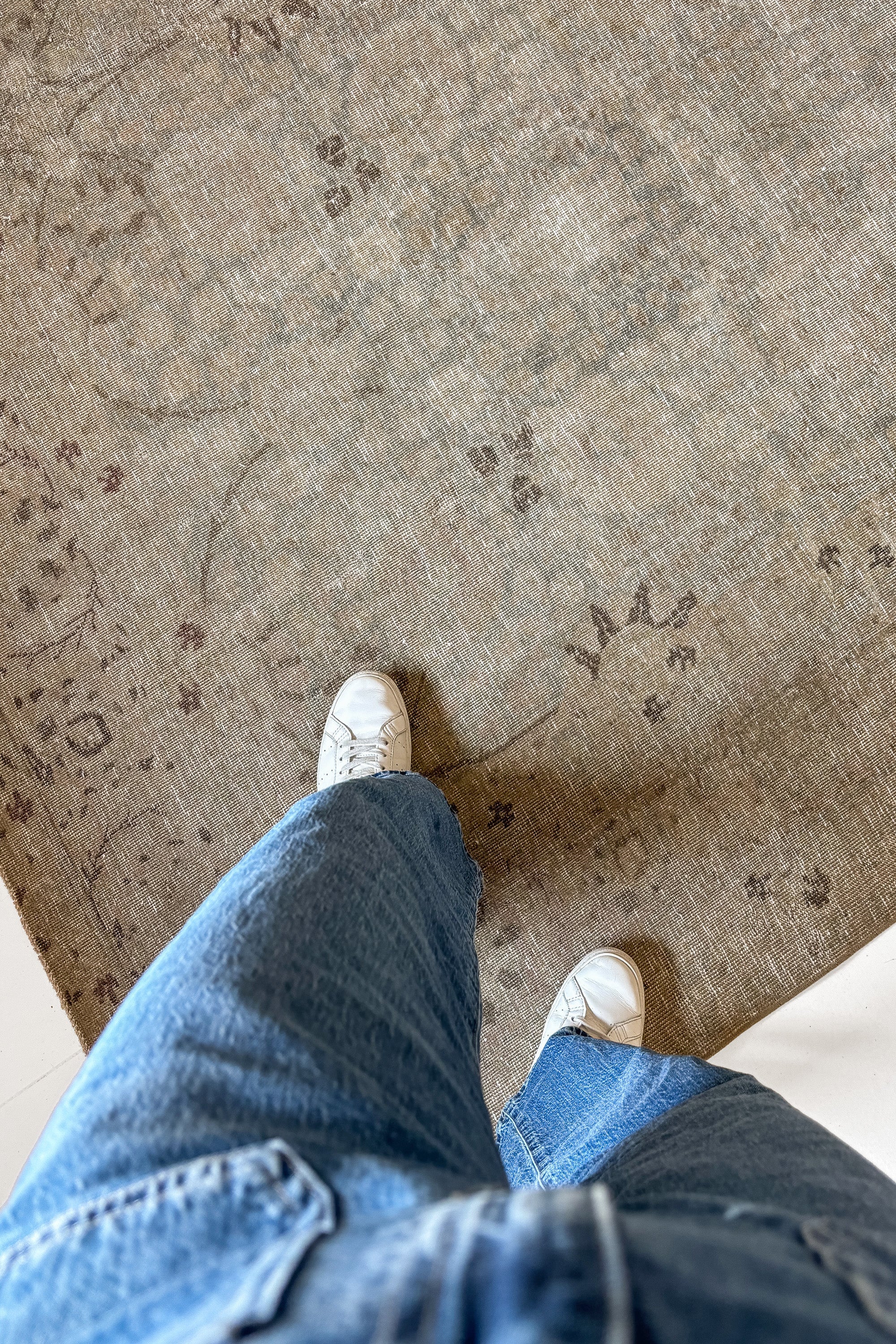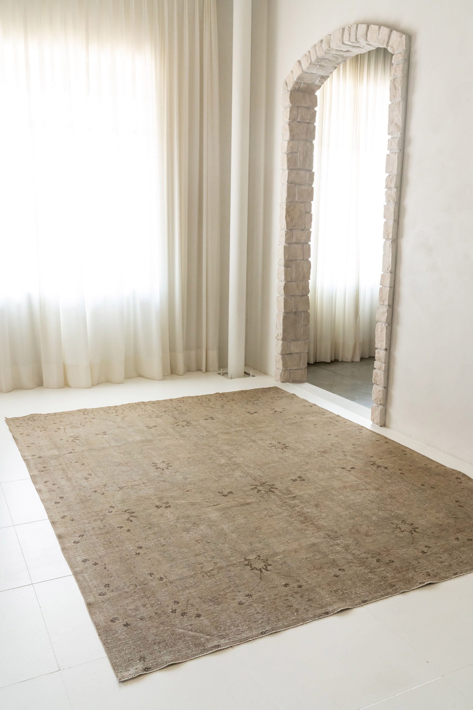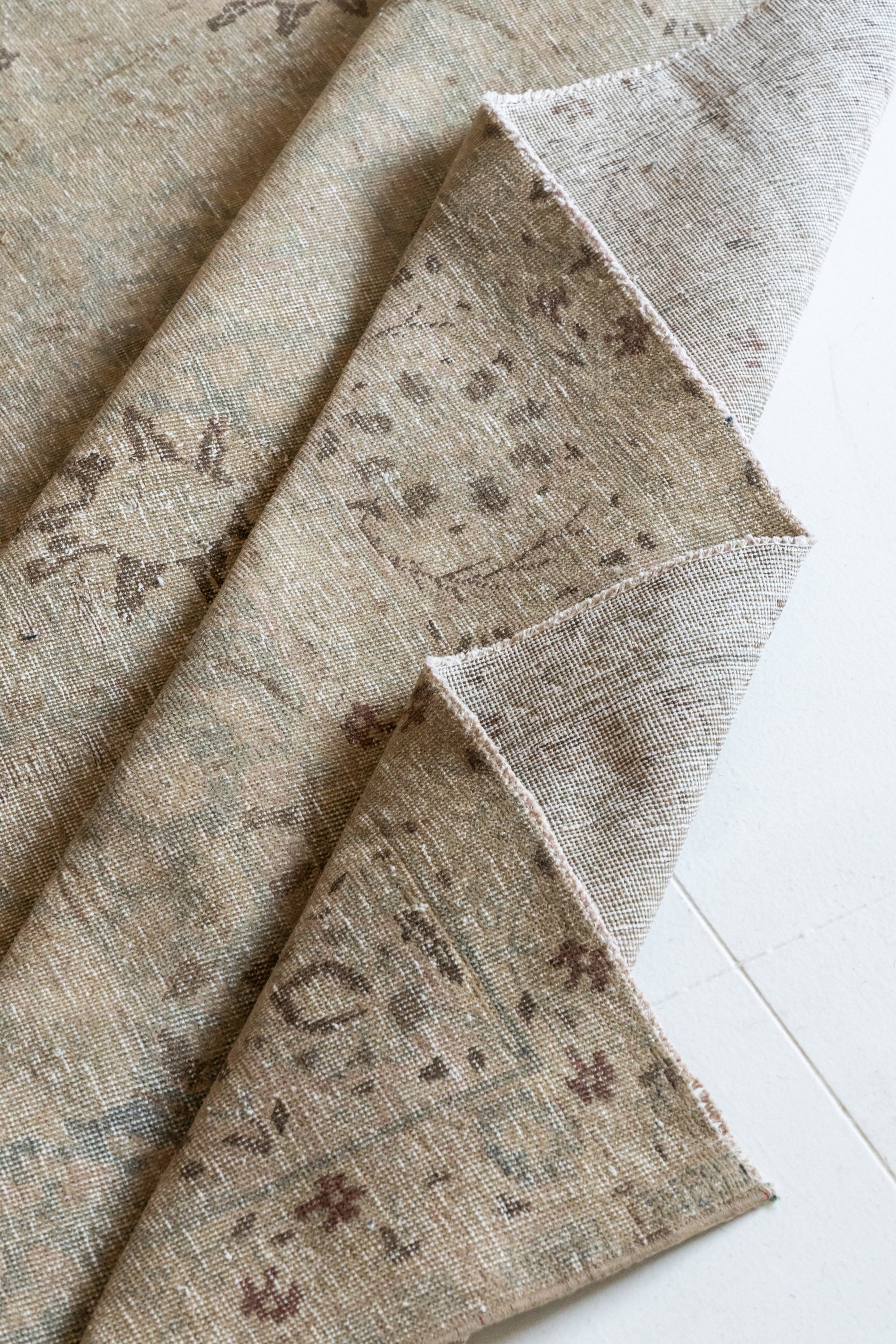 Handmade from wool and cotton in approachable, neutral colors, District Loom's 1930s vintage Persian Tabriz area rug adds warmth and grounding to your home. We love this as the anchor for a timeless, elegant living room or as a welcome start and end to your day layered under your bed. Pile is low.