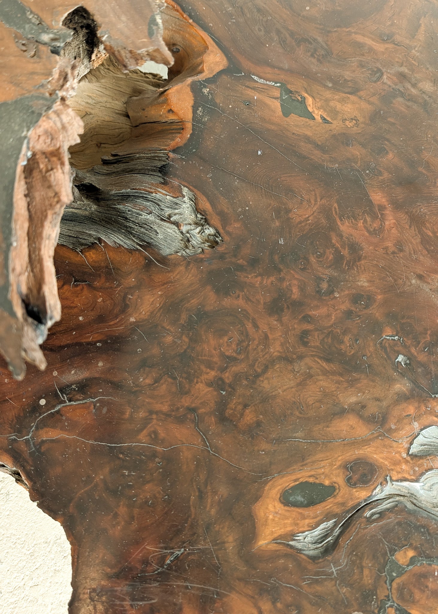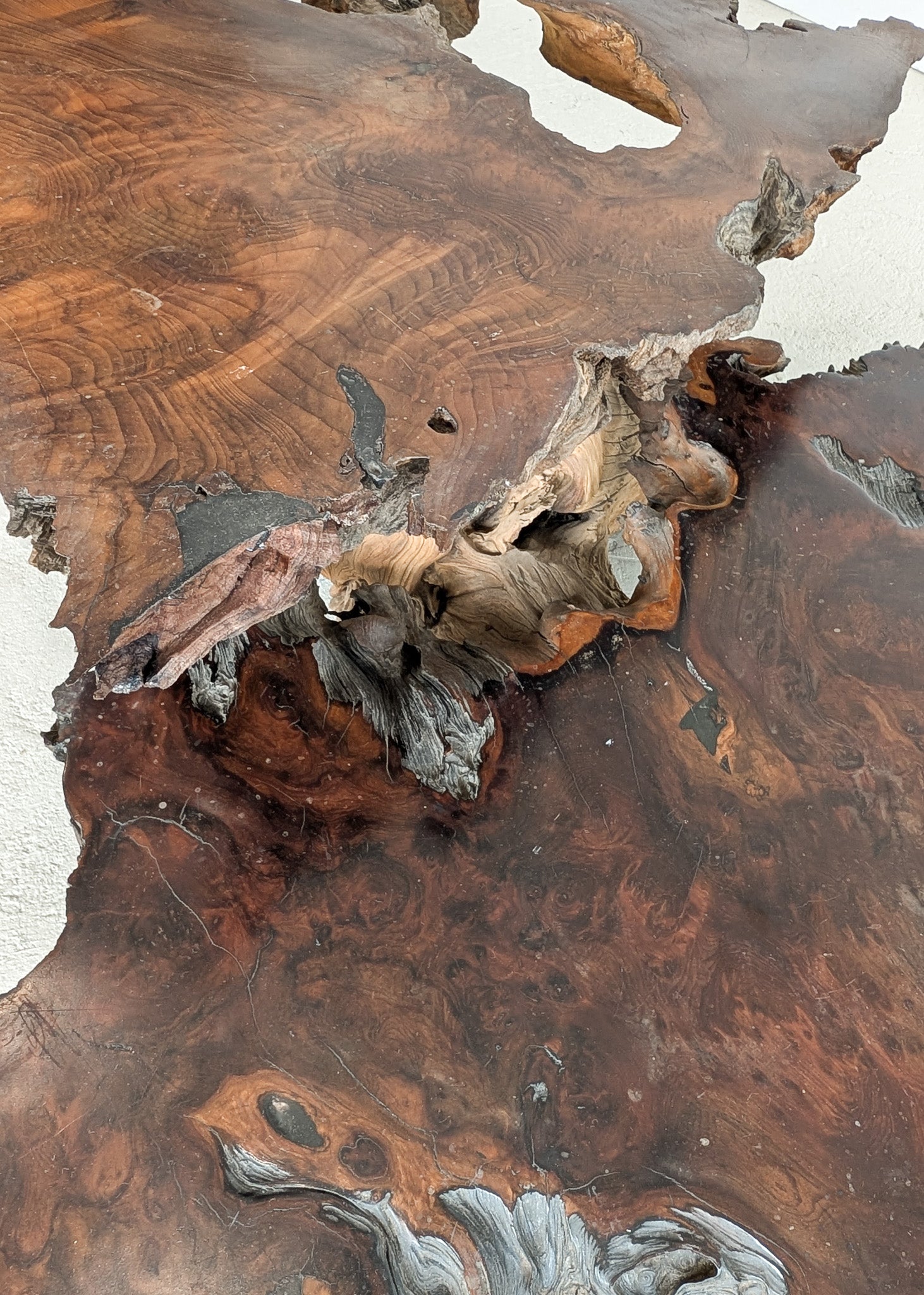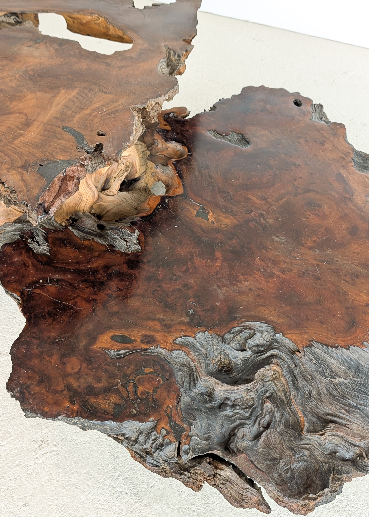 Large Unique Vintage Midcentury Two-Tier Nakashima-Style Redwood Live Edge Coffee Table
