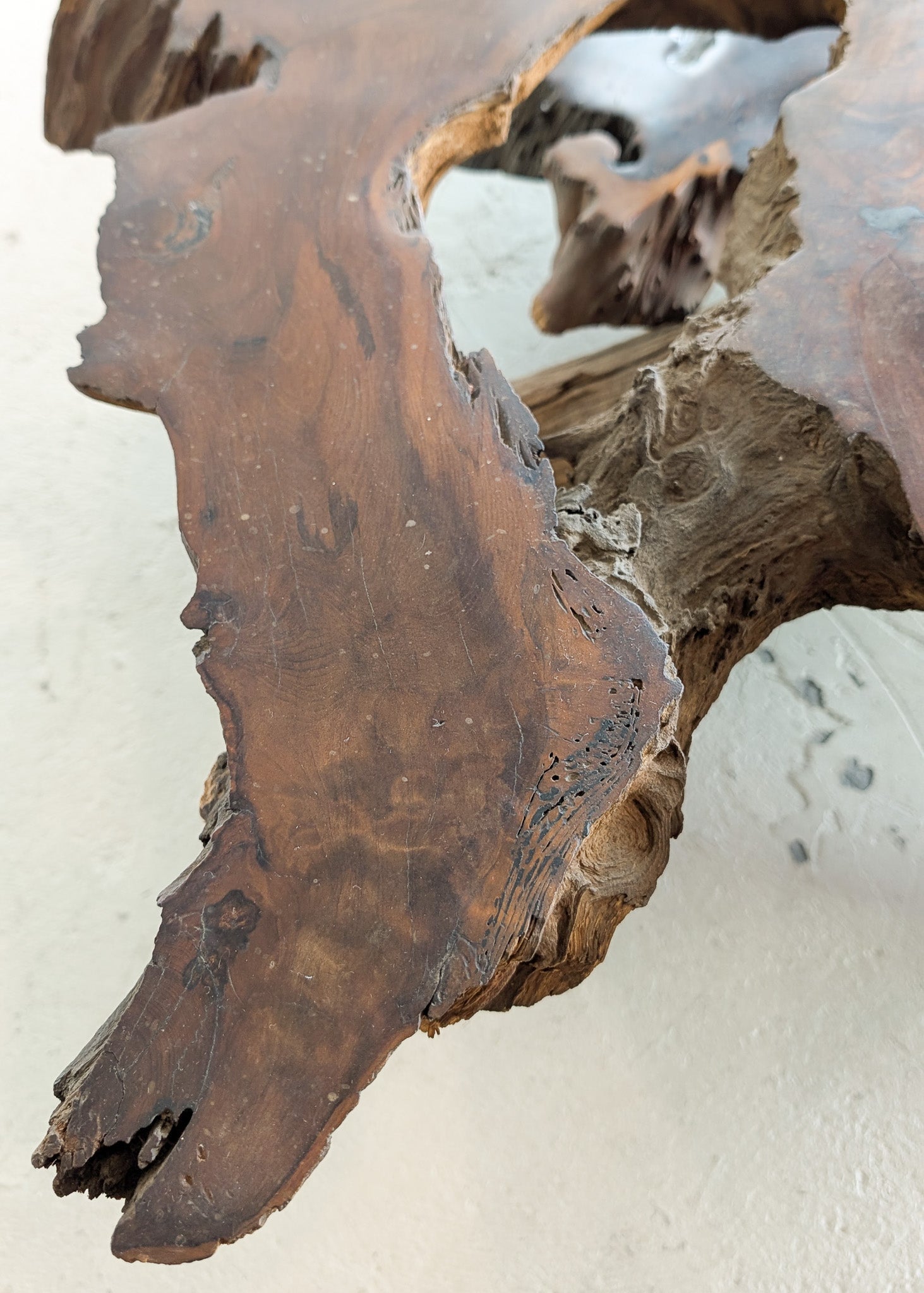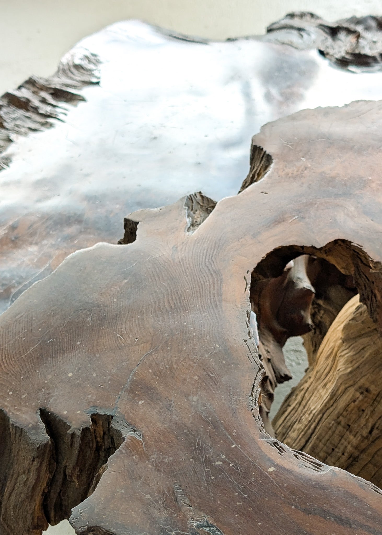 Uniquely handcrafted with two tiers of redwood slabs, our large vintage Nakashima-style live edge coffee table adds warmth and character to your home. We love this in an organic modern living room to introduce texture, as a perfect addition to a home with water views or even in a moody, low-lit family room.