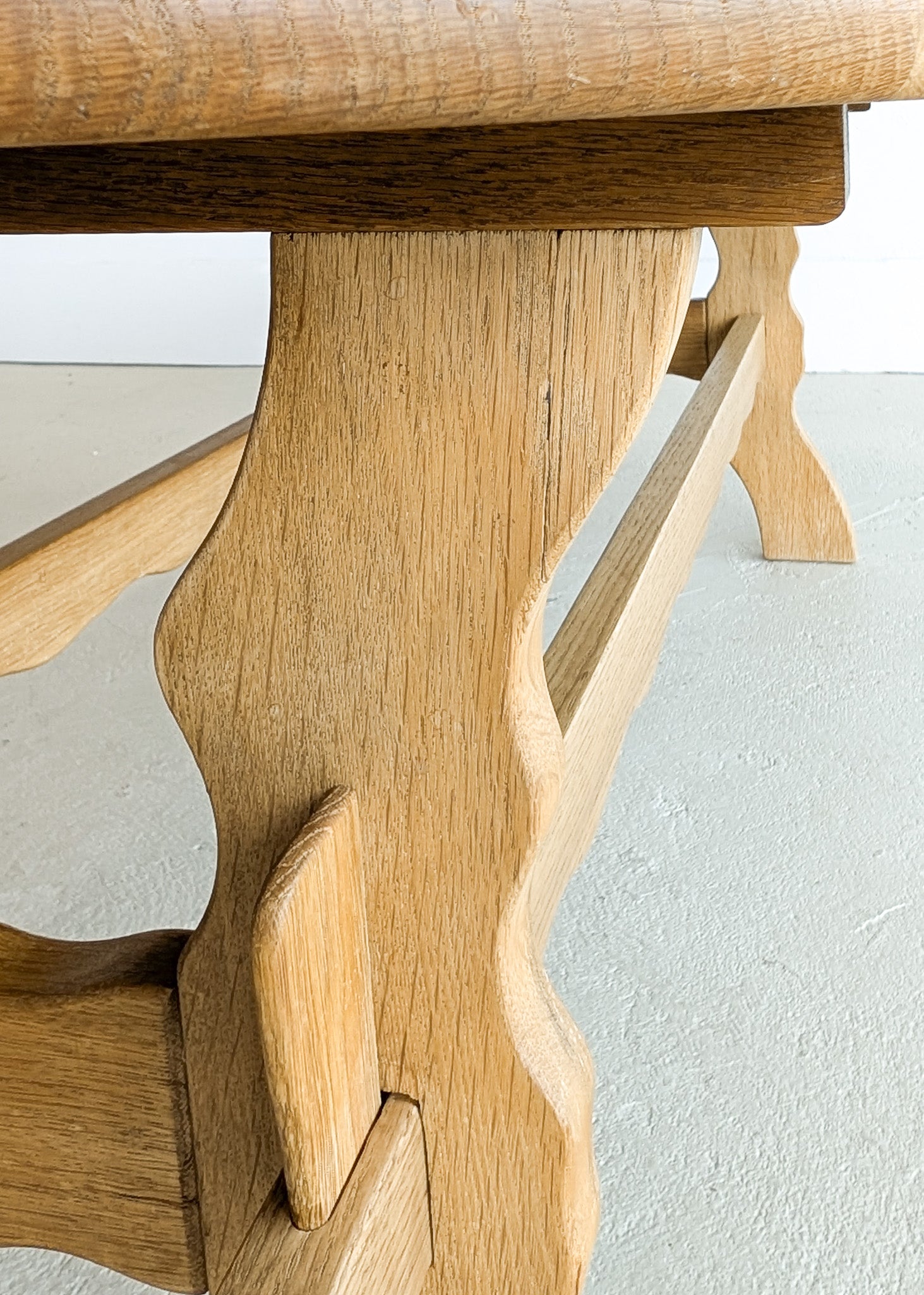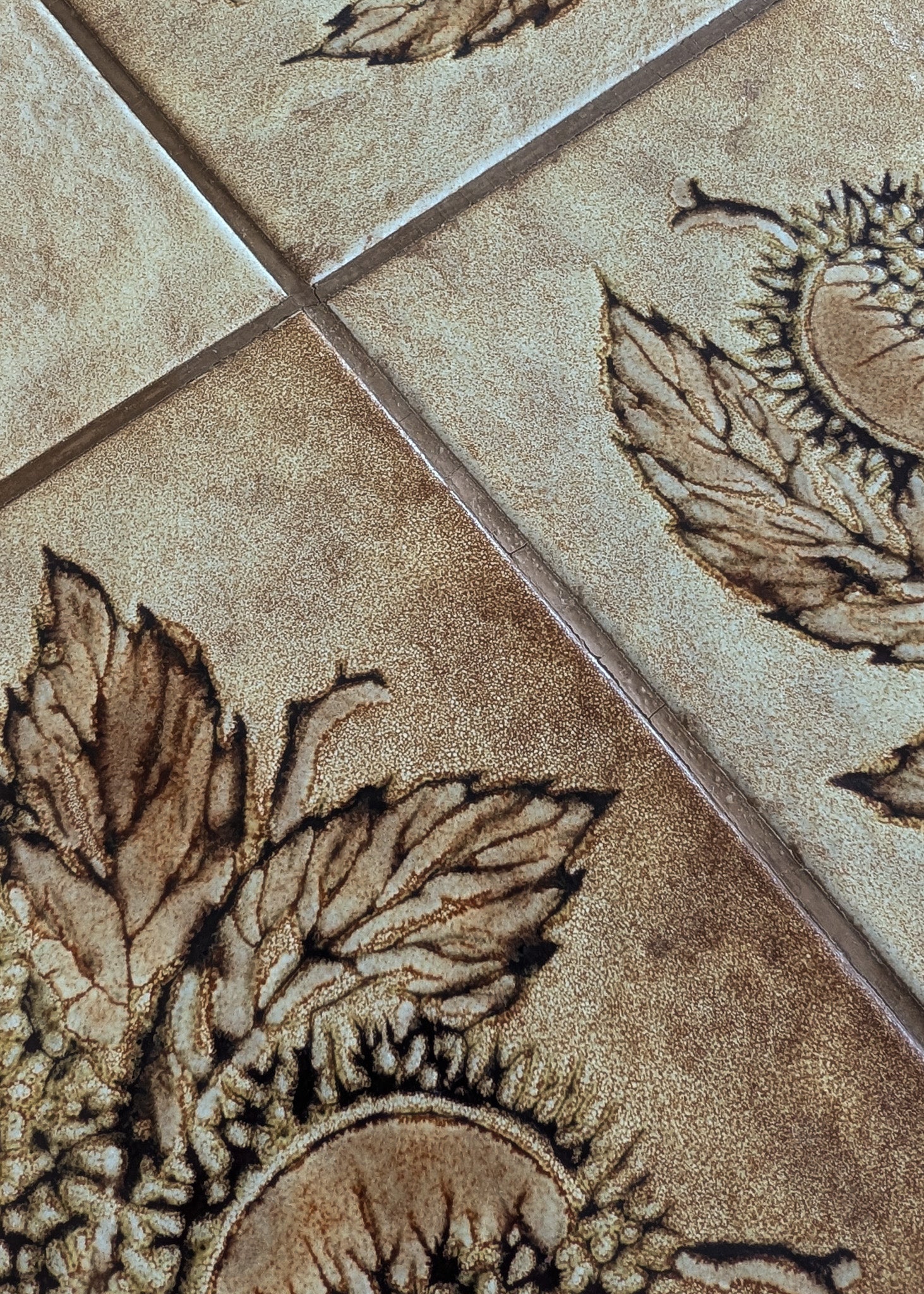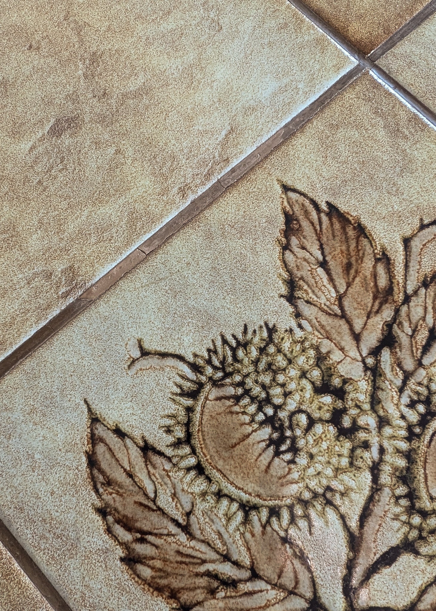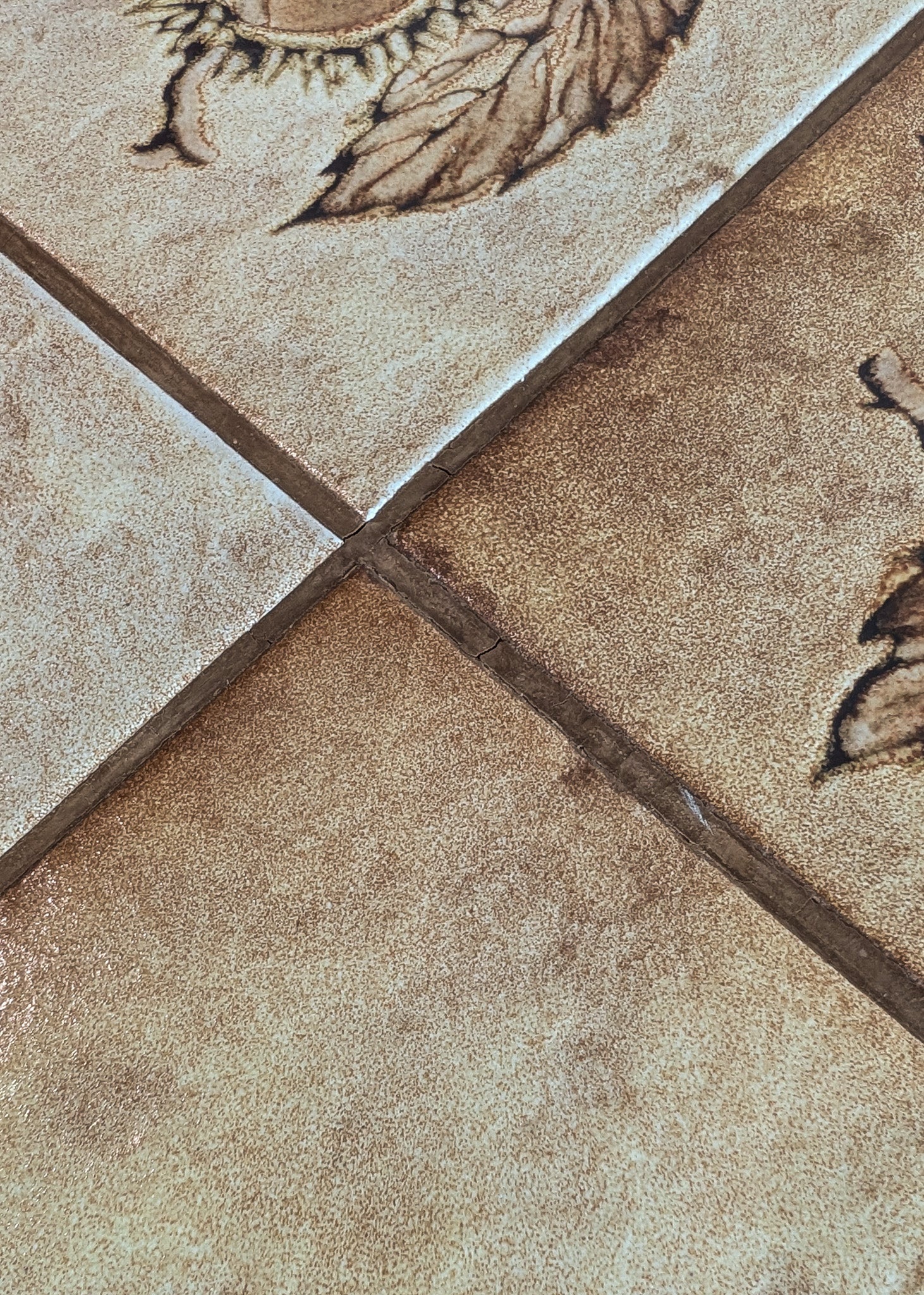 As shown in photos, there is age-appropriate wear throughout. There are some small cracks to the grout lines as well as a completely stable, old repair near the top side of a leg.